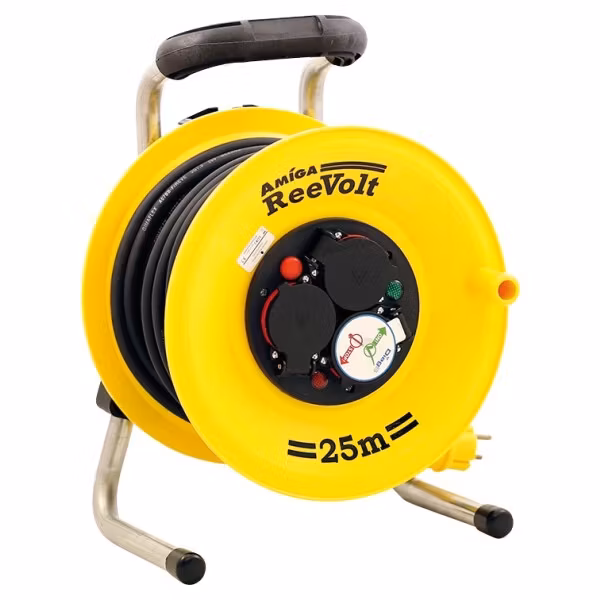 Vinda med stålstativ. Extraförstärkt gummikabel, framtagen med hänsyn till flexibilitet och böjlighet i kyla. Godkänd för utomhusbruk. Tre uttag med självstängande lock. Vindan är försedd med 2 st kontrolllampor.