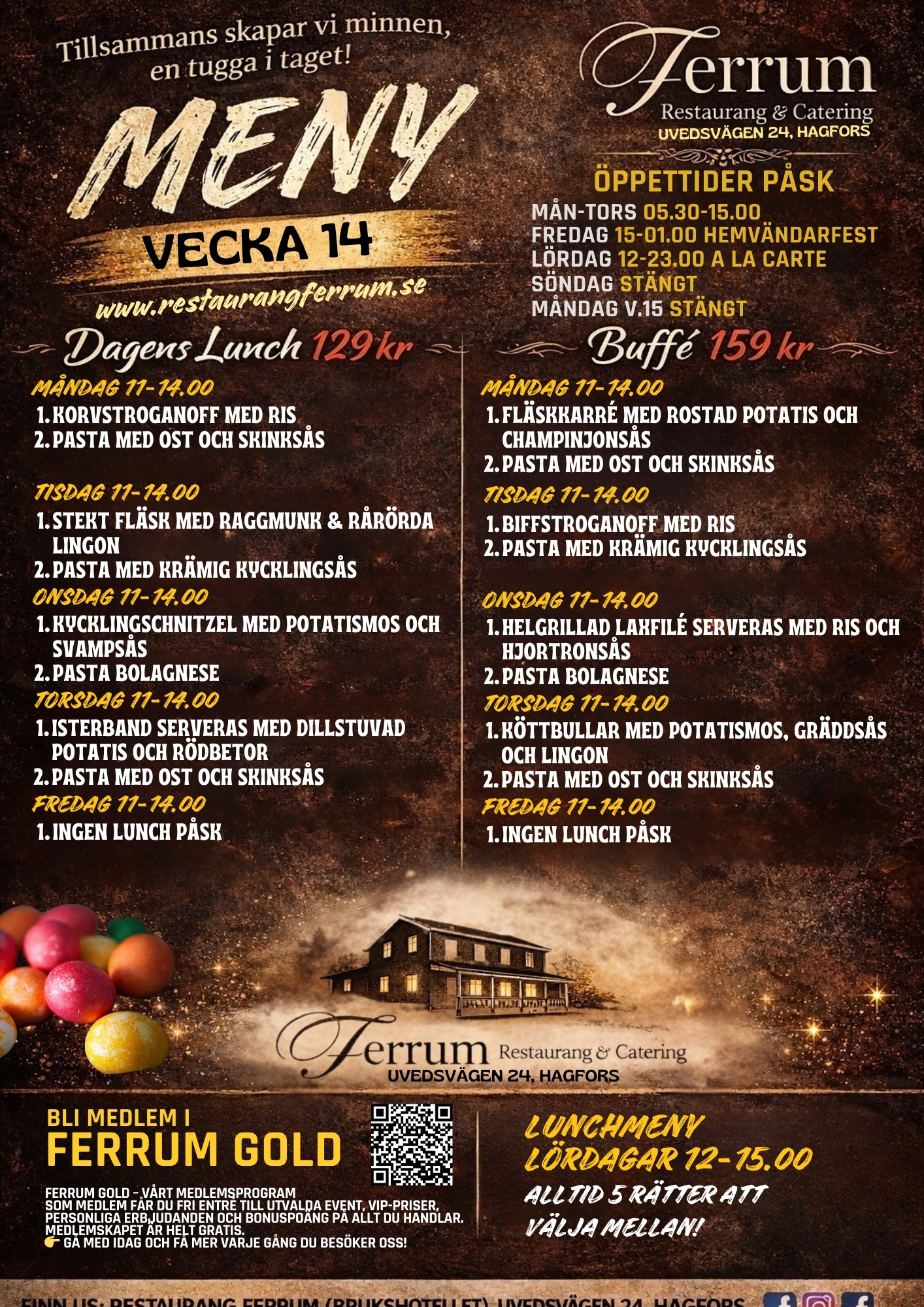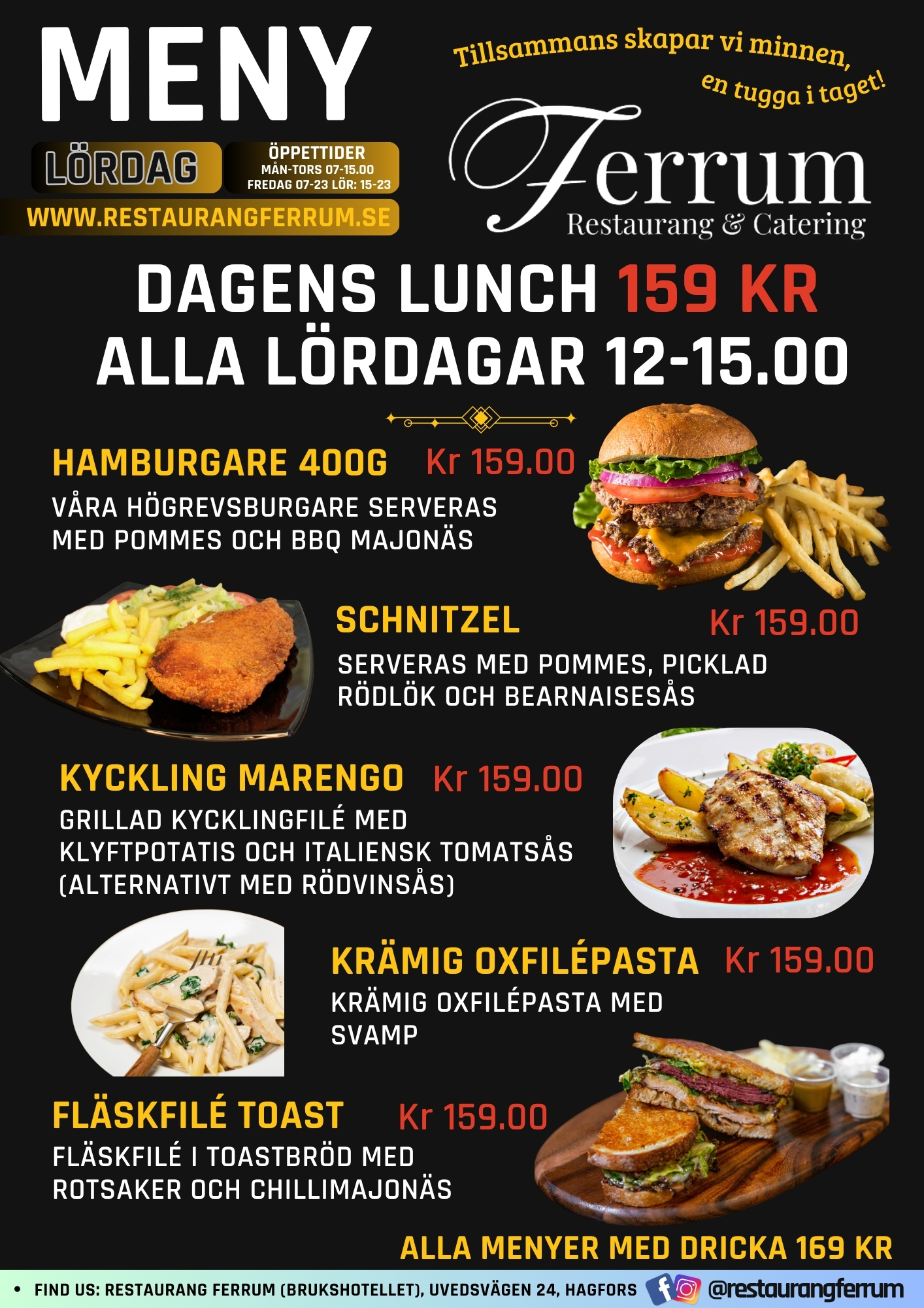 Restaurang Ferrum är belägen i hjärtat av Hagfors, vi har blivit en uppskattad mötesplats för både lokalbor och besökare. Här lagar vårt dedikerade köksteam lunch och middagar med passion och kreativitet för sällskap av alla storlekar.